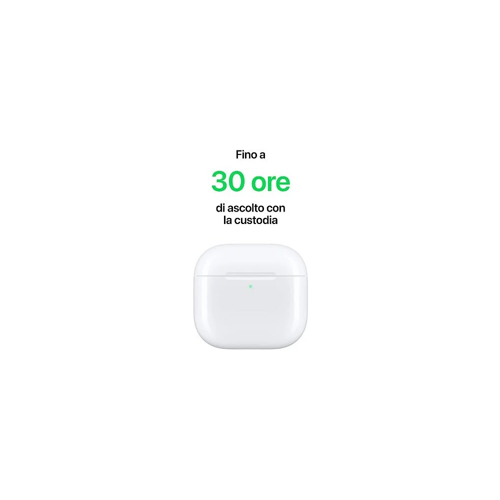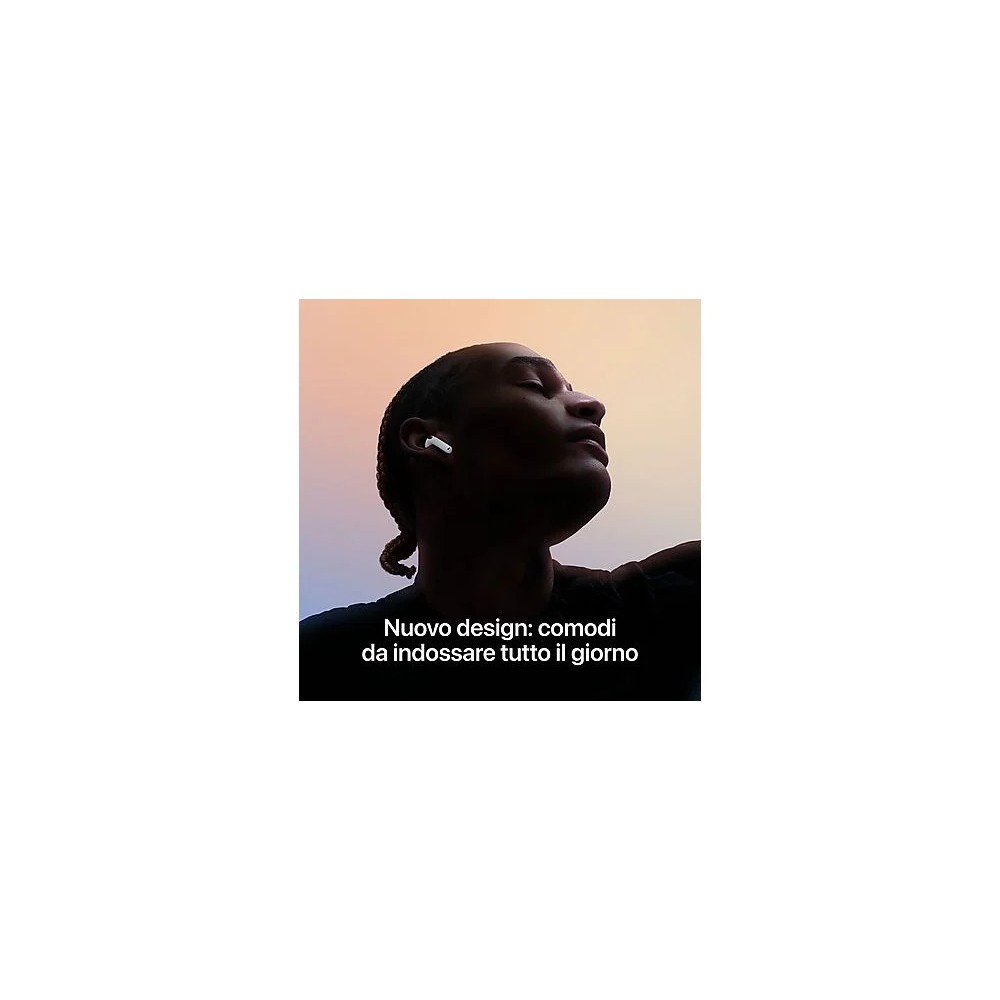 Di’ “Ehi Siri” o anche solo “Siri” per ascoltare un brano, fare una chiamata o controllare i tuoi impegni: grazie alle interazioni con Siri, per rispondere sì o no quando ti chiede qualcosa, ora puoi semplicemente annuire o scuotere delicatamente la testa. Per abbinare gli AirPods 4, ti basta avvicinarli al tuo dispositivo e toccare Connetti sul display. Usando “Condivisione audio”, è facile godersi in coppia un brano o un film, ognuno con il proprio paio di AirPods. In più, gli auricolari hanno un sensore che rileva il contatto con la pelle, quindi fanno partire automaticamente l’audio quando li indossi, e lo mettono in pausa non appena li togli. E se perdi di vista gli AirPods o la custodia di ricarica, puoi rintracciarli con l’app Dov’è.