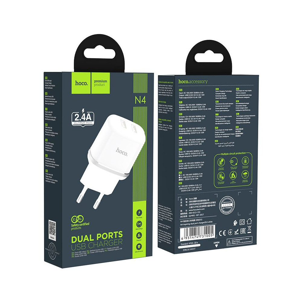 Caricatore 2 USB Universale Hoco bianco